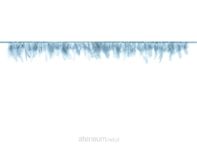 "Girlanda z piór w kolorze jasnomglistoniebieskim, wysokość ok. 17 cm, długość ok. 1 m. "