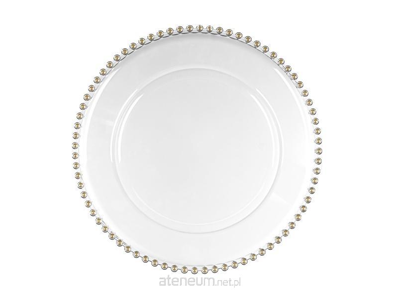 Podtalerz z perłami wykonany z transparentnego plastiku, średnica ok. 32 cm i głębokość 3 cm.