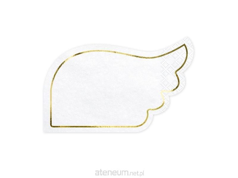 Serwetki papierowe Skrzydła w kolorze białym ze złoty metalizowanym nadrukiem, wymiary po rozłożeniu ok. 32 x 20 cm, wymiary po złożeniu ok. 16 x 10 cm.(1 op. / 20 szt.)