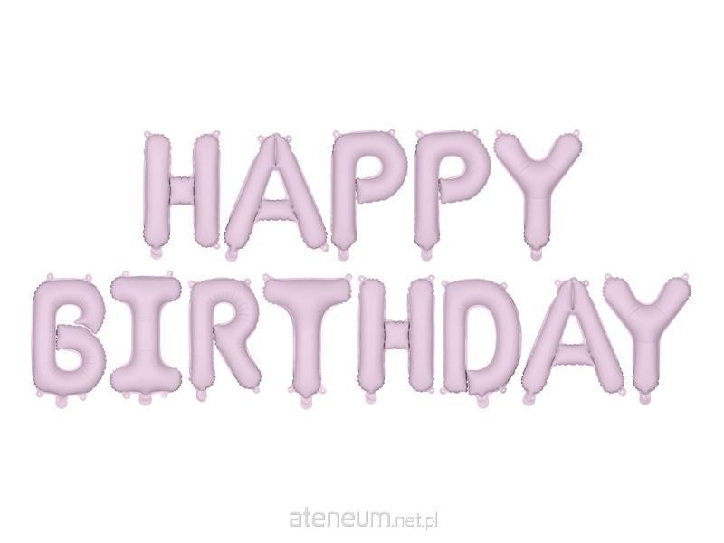 Balon foliowy matowy Happy Birthday w kolorze fioletowym, wymiary ok. 340 x 35 cm (134 x 14''). Do napompowania tylko powietrzem. Każdy balon jest samouszczelniający się. Balony posiadają po 4 haczyki ułatwiające montaż napisu do wstążki.