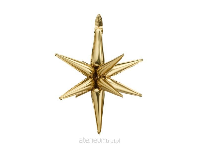 Balon foliowy matowy Gwiazda 3D w kolorze złotym, rozmiar przed napompowaniem ok. 66 x 79 cm (26 x 31''), rozmiar po napompowaniu ok. 70 cm (28''). Do napompowania powietrzem. Zestaw zawiera słomkę.