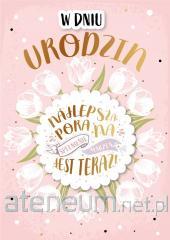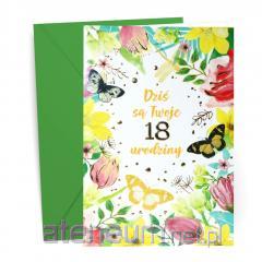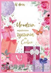 Kartka z kopertą, z życzeniami urodzinowymi. Opakowana folią open.