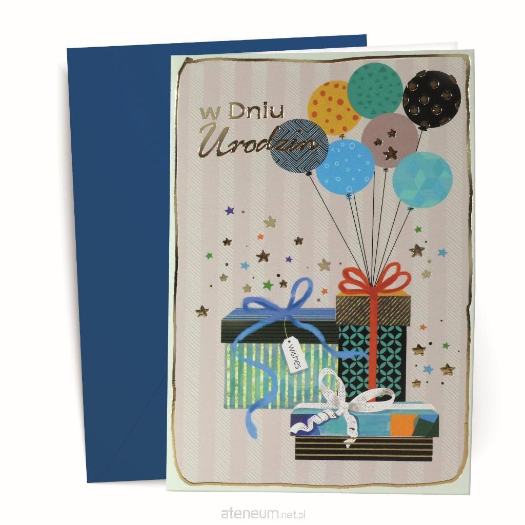 Kartka z kopertą, z życzeniami urodzinowe. Opakowana folią open.