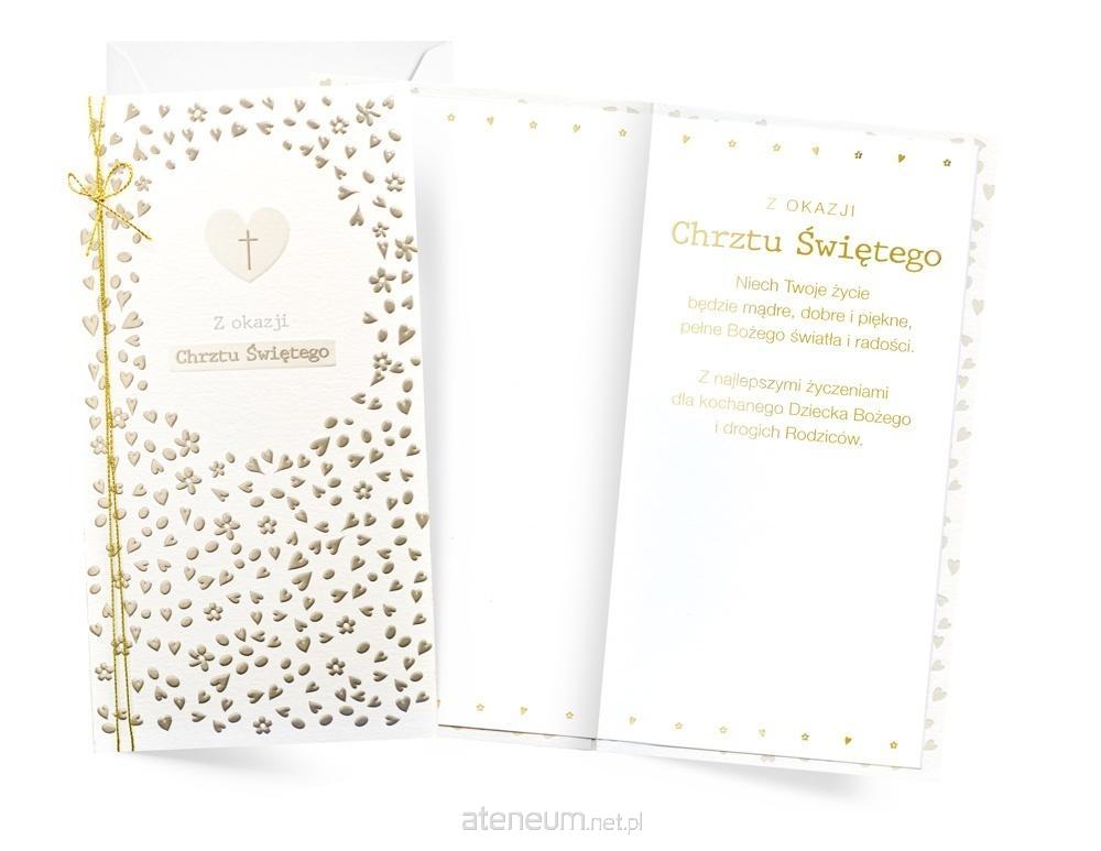 Kartka na Chrzest z serii Passion Moments PM-400 Każda kartka w kolekcji Passion Moments to małe arcydzieło - wyjątkowe i niepowtarzalne, piękne wizualnie. Kartki PM są bardzo bogato zdobione, a jednocześnie skromne i stylowe, cały efekt tkwi w detalach i doskonałym wykonaniu. W zależności od wzoru, na kartkach znajdują się dekoracje ze złotej, srebrnej, perłowej lub holograficznej folii, a także doklejki biżuteryjne, kokardki, laserowe wycięcia, wstążeczki i inne dodatki. Wnętrze karnetu to zawsze atrakcyjna grafika i tekst życzeń. Kartki mają w komplecie dopasowaną kopertę. Cechy szczególne: zdobienie: przynajmniej dwie folie (metaliczne/perłowe/holograficzne), elementy doklejane, wycięcia laserowe, wstążeczki - w zależności od wzoru, wnętrze: z delikatną grafiką, wyjątkowe życzenia w środku, w komplecie: dopasowana kolorystycznie koperta, wymiary karnetu po złożeniu: 11,4 x 21,5 cm. okazja: Chrzest