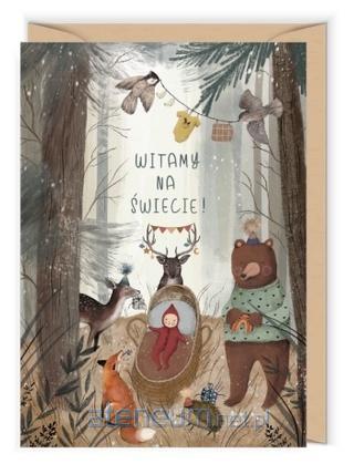 Otwierana kartka, pusta w środku, wykonana na papierze (z certyfikatem EFC) z wyraźnie widoczną fakturą. W zestawie ekologiczna koperta.