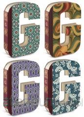 Pięknie zdobiony notes w formie litery. Notatnik na grzbiecie posiada złocenia. Gramatura papieru 120 g/m2. W środku znajdują się gładkie strony. Dostępne litery A, C, D, G, H, J, L, M, N, S, U, W. Okładka występuje w różnych motywach, wzór wysyłany jest losowo.