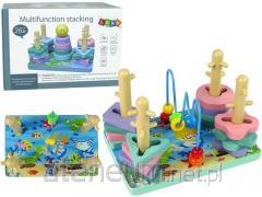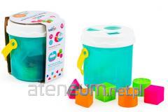 W górnej części wiaderka do wkładania Baby Mix znajduje się 8 różnych otworów, do których można włożyć 16 różnych geometrycznych kształtów i literek Zabawka rozwija dotyk, wzrok i zdolności poznawcze. Wiadro umożliwia wygodne przenoszenie.