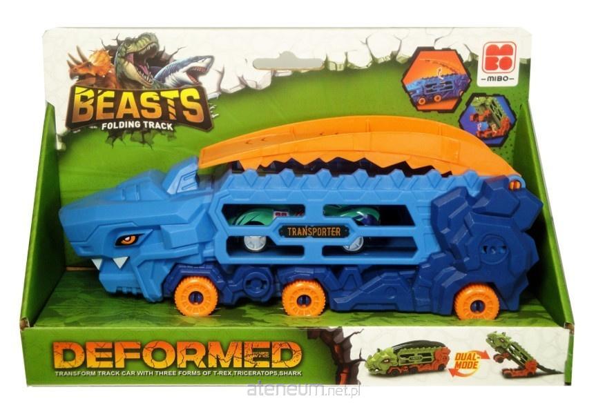 Tor dla autek z wizerunkiem dinozaura. Posiada ruchome części, można go podnieść i wtedy samochody będą zjeżdżać po torze, ale po złożeniu służy też do przechowywania autek. W zestawie znajduje się jedno autko. Produkt występuje w kilku wersjach kolorystycznych, wybierany losowo. Cena dotyczy jednej sztuki. Produkt dla dzieci od 3 lat. Produkt zapakowany w kartonowe opakowanie.