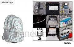 Plecak trzykomorowy Kotki szaro-miętowy 28x12x37cm