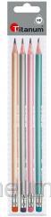 Ołówek z gumką trójkątny HB perłowy 4szt