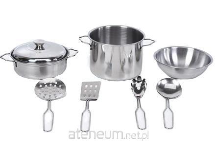 Zestaw metalowych naczyń do zabawy "Mali Kucharze" - Rozbudź kulinarną pasję Twojego dziecka! Przenieś świat prawdziwej kuchni do pokoju Twojego malucha z naszym fantastycznym 8-elementowym zestawem metalowych naczyń do zabawy. Stworzony z myślą o małych entuzjastach gotowania, ten solidny i realistyczny zestaw zapewni godziny kreatywnej i wciągającej zabawy. Każdy element zestawu został starannie wykonany z wysokiej jakości, polerowanej stali nierdzewnej, co gwarantuje trwałość i bezpieczeństwo podczas użytkowania. Dzieci uwielbiają naśladować dorosłych, a te miniaturowe repliki prawdziwych naczyń kuchennych pozwolą im w pełni zanurzyć się w świecie kulinarnych przygód. W skład bogatego zestawu wchodzi: Garnek z idealnie dopasowaną pokrywką: Niezastąpiony do "gotowania" zup, gulaszy i innych pyszności. Pokrywka dodaje realizmu i urozmaica zabawę. Pojemny rondel: doskonały do przygotowywania sosów, smażenia jajek na niby czy duszenia warzyw. Praktyczna miska: przyda się do mieszania składników, przygotowywania sałatek lub serwowania wyimaginowanych dań. Cztery niezbędne przybory kuchenne: Łyżka cedzakowa: Idealna do wyławiania "kluski" czy "warzyw" z "wody". Łopatka z otworami: niezastąpiona do "przewracania" kotletów czy "smażenia" naleśników. Łyżka do makaronu/szumówka: pomocna przy "serwowaniu" spaghetti lub wyjmowaniu większych składników. Chochelka: doskonała do "nalewania" zup i sosów. Zabawa w gotowanie nie tylko dostarcza mnóstwo radości, ale także wspiera rozwój ważnych umiejętności. Dzieci uczą się poprzez naśladowanie, rozwijają swoją wyobraźnię, kreatywność oraz koordynację ruchową. Wspólna zabawa z rodzeństwem lub przyjaciółmi sprzyja budowaniu relacji społecznych i uczy współpracy. Nasz zestaw metalowych naczyń "Mali Kucharze" to doskonały pomysł na prezent dla każdego małego miłośnika kuchni. Solidne wykonanie i dbałość o detale sprawiają, że zabawka posłuży przez długi czas, dostarczając niezliczonych godzin fantastycznej zabawy. Pozwól swojemu dziecku odkryć radość z gotowania w bezpieczny i kreatywny sposób!