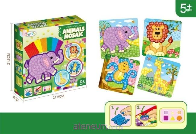 Odkryj fascynujący świat kreatywności z zestawem "Stwórz Własne Mozaiki ze Zwierzętami"! Ten wspaniały zestaw to idealny sposób na rozwijanie zdolności manualnych, kreatywności i wyobraźni u dzieci w wieku 5 lat i starszych. Wewnątrz pudełka znajdziesz wszystko, co potrzebne do stworzenia czterech uroczych obrazków przedstawiających popularne zwierzęta: majestatycznego lwa, przyjaznego słonia, wesołą małpkę i dostojną żyrafę. Każdy obrazek stanowi gotowy szablon z konturami zwierzęcia, który Twoje dziecko będzie mogło wypełnić kolorowymi, samoprzylepnymi mozaikami. W zestawie znajduje się bogaty wybór błyszczących kwadracików w różnych barwach, co pozwala na tworzenie unikalnych i pełnych życia dzieł sztuki. Zabawa jest niezwykle prosta i intuicyjna. Wystarczy odkleić mozaikę z arkusza i przykleić ją w odpowiednim miejscu na obrazku. To doskonałe ćwiczenie precyzji i koordynacji wzrokowo-ruchowej. Gotowe mozaiki będą wspaniałą ozdobą pokoju dziecka lub oryginalnym prezentem dla bliskich. Zalety produktu: Rozwija kreatywność i wyobraźnię: Dziecko ma możliwość tworzenia własnych, kolorowych wersji zwierząt. Poprawia zdolności manualne: Przyklejanie małych mozaik doskonale ćwiczy precyzję ruchów dłoni i palców. Wspiera koordynację wzrokowo-ruchową: Dziecko uczy się dopasowywać elementy do odpowiednich miejsc. Zapewnia wciągającą i satysfakcjonującą zabawę: Tworzenie mozaiki to zajęcie, które angażuje i daje poczucie sprawczości. Zawiera 4 różne obrazki zwierząt: Więcej zabawy i różnorodności. Samoprzylepne mozaiki: Łatwe i czyste w użyciu, bez konieczności stosowania kleju. Idealny prezent dla dzieci od 5 lat. Podaruj swojemu dziecku radość tworzenia i satysfakcję z własnoręcznie wykonanych dzieł sztuki z zestawem "Stwórz Własne Mozaiki ze Zwierzętami"!