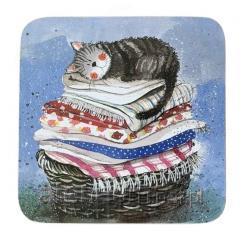 Podkładka pod kubek C17 Kot na koszu z praniem