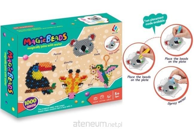 Odkryj fascynujący świat Magicznych Koralików! Ten kreatywny zestaw zapewnia godziny wciągającej zabawy, rozwijając przy tym zdolności manualne i wyobraźnię Twojego dziecka. W opakowaniu znajdziesz aż 1000 kolorowych koralików oraz specjalne szablony, dzięki którym stworzysz cztery urocze zwierzątka: barwną papugę, sympatyczną żyrafę, uroczego koalę i kolorowego ptaszka. Zabawa z Magicznymi Koralikami jest niezwykle prosta i bezpieczna. Wystarczy ułożyć koraliki na wybranym szablonie, a następnie spryskać je wodą. Magia! Koraliki pod wpływem wody łączą się, tworząc trwałą i efektowną figurkę. To doskonała alternatywa dla tradycyjnych koralików do prasowania - nie potrzebujesz żelazka ani kleju! Zestaw Magic Beads to idealny pomysł na prezent dla dzieci powyżej 5 roku życia. Zapewnia nie tylko świetną rozrywkę, ale także uczy cierpliwości i precyzji. Stworzone figurki mogą stać się ozdobą pokoju lub unikalnym upominkiem. Pozwól swojemu dziecku wkroczyć do świata kreatywności z Magicznymi Koralikami!