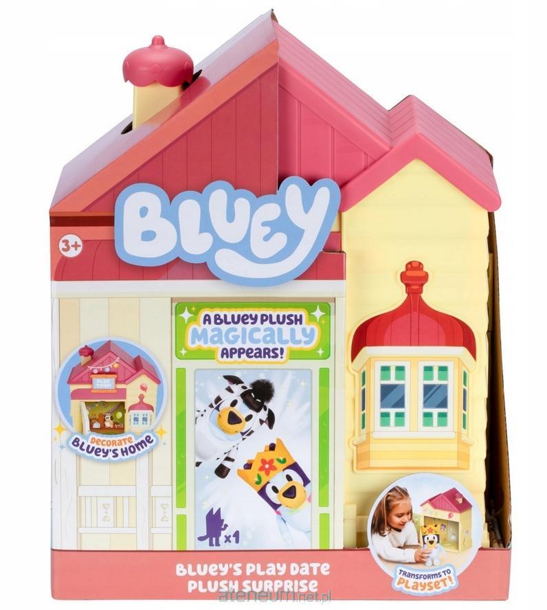 Przygotuj się na niespodziewane spotkanie z Bluey dzięki Zestawowi Domek niespodzianka z pluszakiem! Teraz możesz odwiedzić Bluey w jej domu i spędzić z nią popołudnie na zabawie. A kiedy otworzysz drzwi, czeka na ciebie wielka niespodzianka. W środku znajdziesz wyjątkowy prezent z tabliczką Czas na zabawę oraz arkuszem naklejek. Zamknij drzwi i użyj naklejek, aby udekorować domek. Tabliczkę możesz umieścić z przodu. Gdy ponownie otworzysz drzwi, znajdziesz ekskluzywną maskotkę Bluey gotową do zabawy czy to będzie Królowa Bluey czy Bluey w kostiumie? Kogo znajdziesz? Nie wymaga baterii, wiek 3+