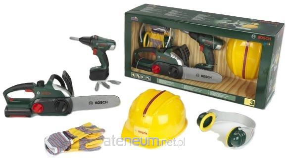 Zestaw dla fanów budowy i majsterkowania składa się z bezprzewodowej wkrętarki z funkcją światła i dźwięku z wymiennymi końcówkami, a także piły łańcuchowej z dźwiękiem cięcia i migającym światłem podczas cięcia. Dodatkowo dostępny jest regulowany rozmiarowo kask, wysokiej jakości rękawice i regulowane rozmiarowo nauszniki, które zamieniają małe dzieci w świetnych rzemieślników.
