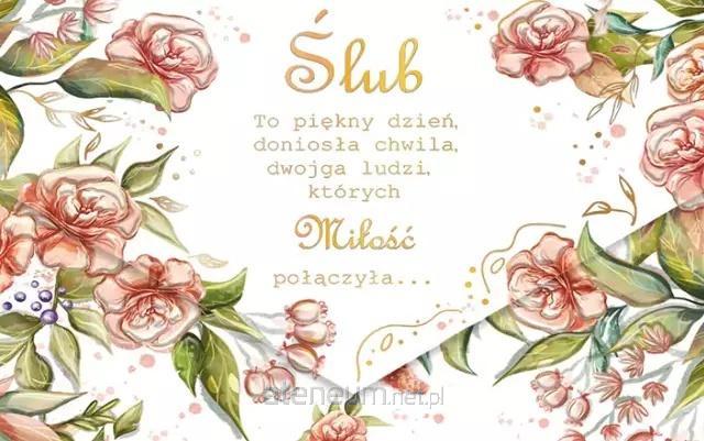 Karnet z kieszonką na pieniądze w formacie A5, składany z trzech. Złocony i tłoczony, teksy życzeń w środku. Wydrukowany na wysokiej jakości papierze. W zestawie koperta.