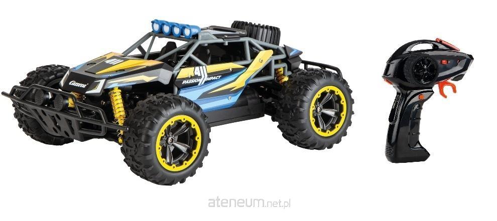 Odkryj najlepszy samochód terenowy dla młodszych i starszych fanów off-roadu! Zdalnie sterowany pojazd w skali 1:16 oferuje CYFROWE STEROWANIE PROPORCJONALNE z technologią 2,4 GHz bez zakłóceń. Dzięki prędkości maksymalnej do 15 km/h poradzi sobie z każdą nawierzchnią. Model o długości 29 cm zachwyca solidnym podwoziem, świecącym zawieszeniem i pałąkiem zabezpieczającym. Podwozie z pełnym zawieszeniem i opony pneumatyczne zapewniają wyjątkowe wrażenia z jazdy. Akumulator LiFePo zapewnia do 20 minut jazdy. Carrera RC Passion Impact 2.0 to idealny prezent dla dzieci i wszystkich tych, którzy kochają off-road. Przeżyj niezapomnianą akcję w terenie już teraz!