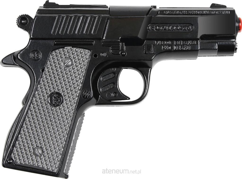 Metalowy pistolet policyjny na 8 naboi z bębenkiem. Wymiary: 15,5x11 cm. Wiek: 3+.