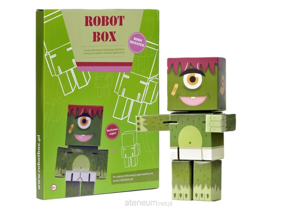 Baw się, buduj i zbierz kolekcję ruchomych Robotów! Nie potrzeba ani kleju ani nożyczek! ROBOT BOX to zestawy trzech różnych Robotów do samodzielnego składania: Robo Monster, Robo Boss i Robo Sam. Zestawy mają wszystko, co potrzebne, aby zbudować własne ruchome roboty.Każde opakowanie zawiera instrukcję, cztery laminowane, nacięte i gotowe do wypchnięcia arkusze o formacie A4 oraz 3 elastyczne sznurki.Opakowanie Robo SAM posiada dodatkowo zestaw naklejek potrzebnych do ozdobienia gotowego Robota.