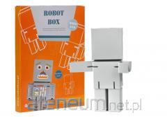 Baw się, buduj i zbierz kolekcję ruchomych Robotów! Nie potrzeba ani kleju ani nożyczek! ROBOT BOX to zestawy trzech różnych Robotów do samodzielnego składania: Robo Monster, Robo Boss i Robo Sam. Zestawy mają wszystko, co potrzebne, aby zbudować własne ruchome roboty.Każde opakowanie zawiera instrukcję, cztery laminowane, nacięte i gotowe do wypchnięcia arkusze o formacie A4 oraz 3 elastyczne sznurki.Opakowanie Robo SAM posiada dodatkowo zestaw naklejek potrzebnych do ozdobienia gotowego Robota.