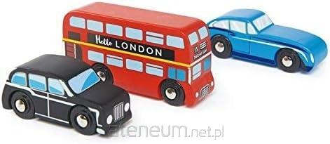 Zestaw London Car Set zawiera karetkę pogotowia, piętrowy autobus i czarną taksówkę.
