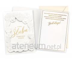 Kartka Dream Cards na Ślub DK-1322 Kartka B6 z ozdobnej serii Dream Cards - nieduża, ale robi wrażenie dzięki atrakcyjnej kolorystyce i ciekawym zdobieniom. To idealny wybór łączący przyjazną cenę z jakością. Cechy szczególne: wielkość: B6, 16.6 x 11.7 cm po złożeniu, koperta: w zestawie, kolorowa, zdobienia: kolorowe, różnorodne, bogate (w zależności od wzoru: przyklejane dekoracje, elementy biżuteryjne, odstawniki, metaliczne folie, tłoczenia itp.), okazja: Ślub