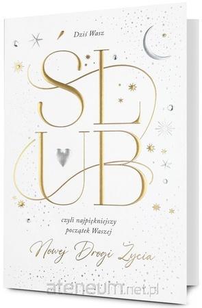 Kartka jest bogato i różnorodnie zdobiona (zależnie od wzoru: metaliczna folia, lakier perłowy,