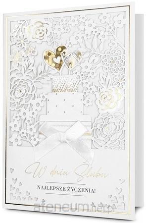 Kartka jest bogato i różnorodnie zdobiona (zależnie od wzoru: metaliczna folia, lakier perłowy,
