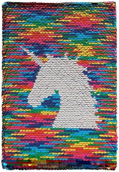 notes, atrakcyjna okładka z cekinami, 80 kartek, papier w linie, rozmiar kartki 14 x 20 cm, rozmiar notesu 14,5 x 21 cm