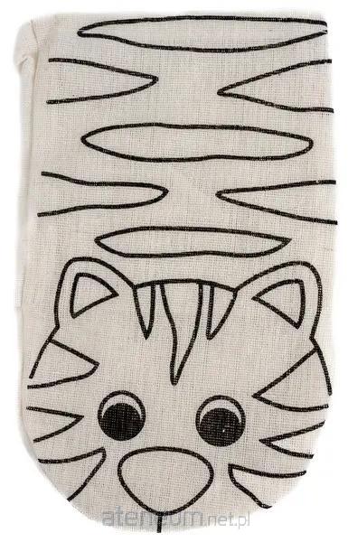 płócienna kukiełka ze wzorem do malowania markerami akrylowymi, wymiary 12 x 20 cm