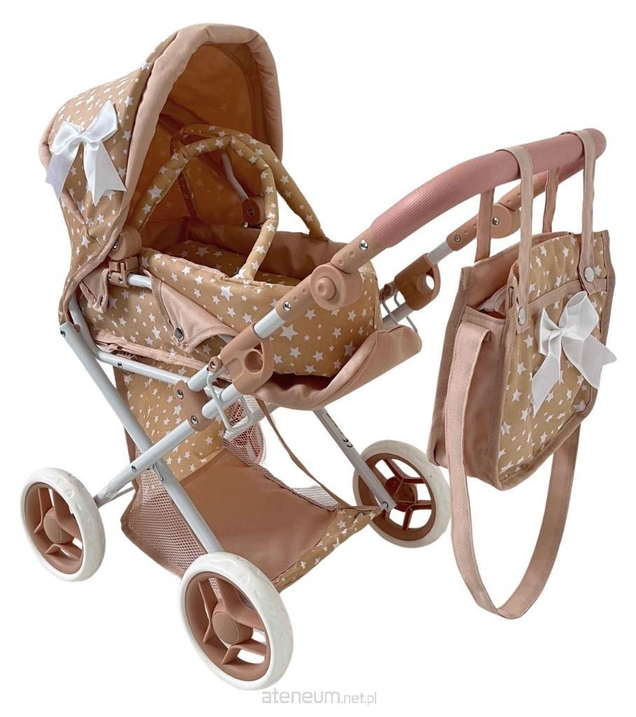 Wózek posiada: ładne metalowe rurki, szybkie składanie, blokadę przed samoczynnym złożeniem się wózka, materiał solidny bawełniany z możliwością zdjęcia do prania, duży kosz na zakupy, wyjmowane nosidło, pościel, regulowaną wysokość rączki, torbę, pasy w wersji spacerowej.