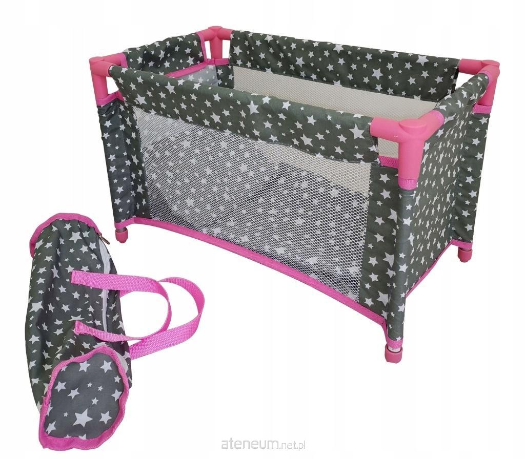 Łóżeczko-kojec dla lalek szary w białe gwiazdki
