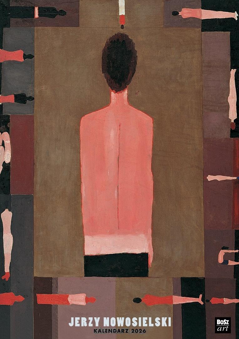 Kalendarz 13-kartkowy na 2026 rok z ilustracjami obrazów Jerzego Nowosielskiego w formacie A3 (420x297 mm) wydrukowany na kredowym papierze o gramaturze 170 g.