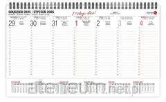 W kalendarzu zaznaczone święta. Na tylnej części podstawki kalendarza istnieje możliwość naniesienia reklamy na obszarze o wymiarach 305 x 100 mm w formie nadruku lub naklejki.