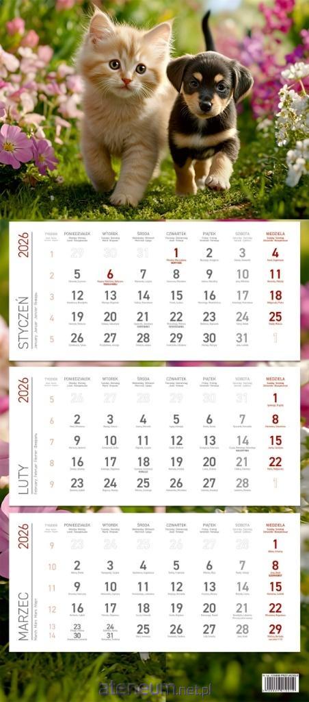 Kalendarz 2026 ścienny trójdzielny Kwiaty