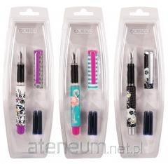 Cechy: - gumowy i profilowany uchwyt ułatwiający prawidłowe trzymanie pióra - zasilane standardowymi nabojami atramentowymi - pióro wieczne posiada stalówkę irydową o grubości M. Wzór widoczny na zdjęciu. Pióro zapakowane w kartonowe etui z zawieszką.
