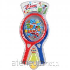 Zestaw treningowy do tenisa W zestawie znajdują się: dwie rakietki, stabilna podstawka z możliwością dociążenia wodą, poręczny uchwyt do przenoszenia oraz wyżłobienie na piłeczkę. Do kompletu dołączona jest również piłeczka na sznurku, którą należy przymocować do podstawki. Wymiary opakowania: 39 x 8 x 25 cm Wymiary rakiety: 21 x 39 cm; sznurek 30 cm z piłeczką o średnicy 6 cm Wiek 3+