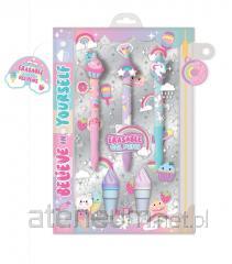 Gruby pamiętnik zamykany na kłódkę w okładce z ozdobami 3D. 150 dwustronnych kartek w linie. W zestawie 2 kluczyki do kłódeczki. Wiek: 5+