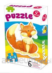 Puzzle wykonane zostały z grubej tektury lakierowanej, odpornej na ścieranie i zginanie. Elementy są duże, łatwe do chwytania, posiadają standardowe zaczepy typu interlocking. Po ułożeniu tworzą spójną, barwną ilustrację z motywem leśnym i pojazdem.