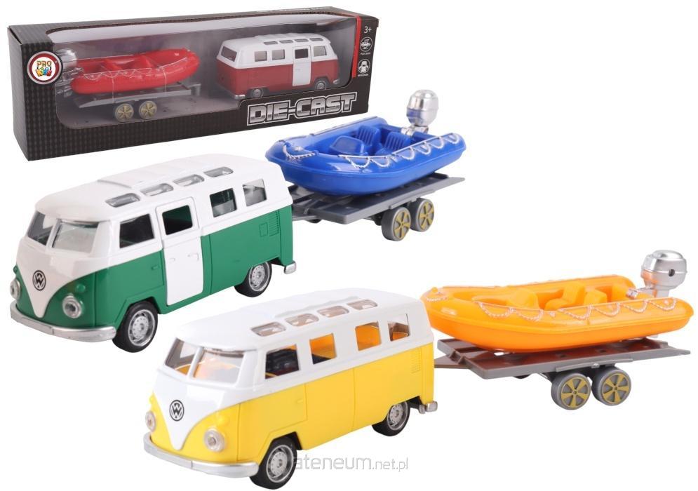 Czas ruszyć w podróż pełną przygód! Zestaw ?Bus z przyczepą i pontonem od marki Pro Kids to hołd dla klasyki motoryzacji i wypoczynku w stylu retro. Kultowy, dwukolorowy van inspirowany legendarnym Volkswagenem T1 zachwyca swoim charakterystycznym wyglądem, detalami wykończenia i otwieranymi drzwiami. W zestawie znajduje się także dwukołowa przyczepa oraz kolorowy ponton z silnikiem zaburtowym gotowy do wodnych ekspedycji.
