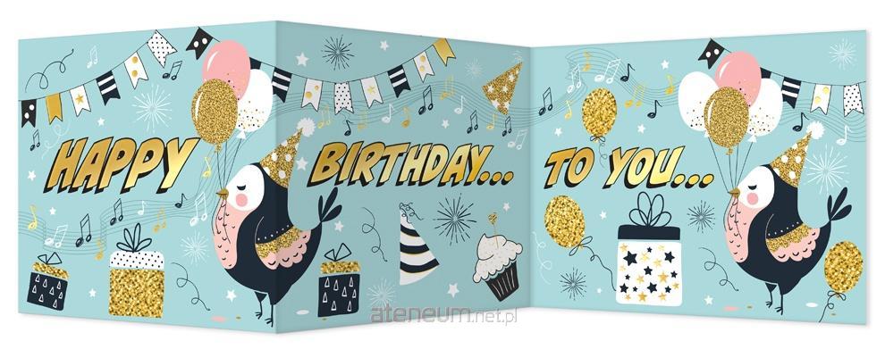 Złocony karnet okolicznościowy w formie harmonijki, koperta w zestawie. Format B6