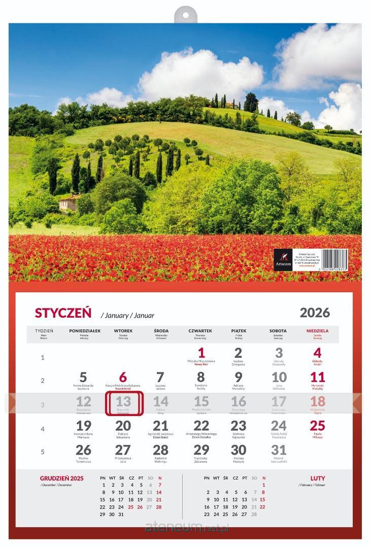 Kalendarz 2026 trójdzielny płaska główka MIX