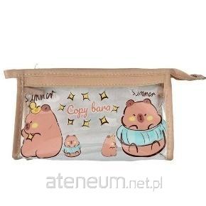 Transparentny piórnik z motywem kapibary o wymiarach 21 x 10,5 x 7 cm. Praktyczny i stylowy, idealny do przechowywania przyborów szkolnych i akcesoriów. Lekki i łatwy do czyszczenia.