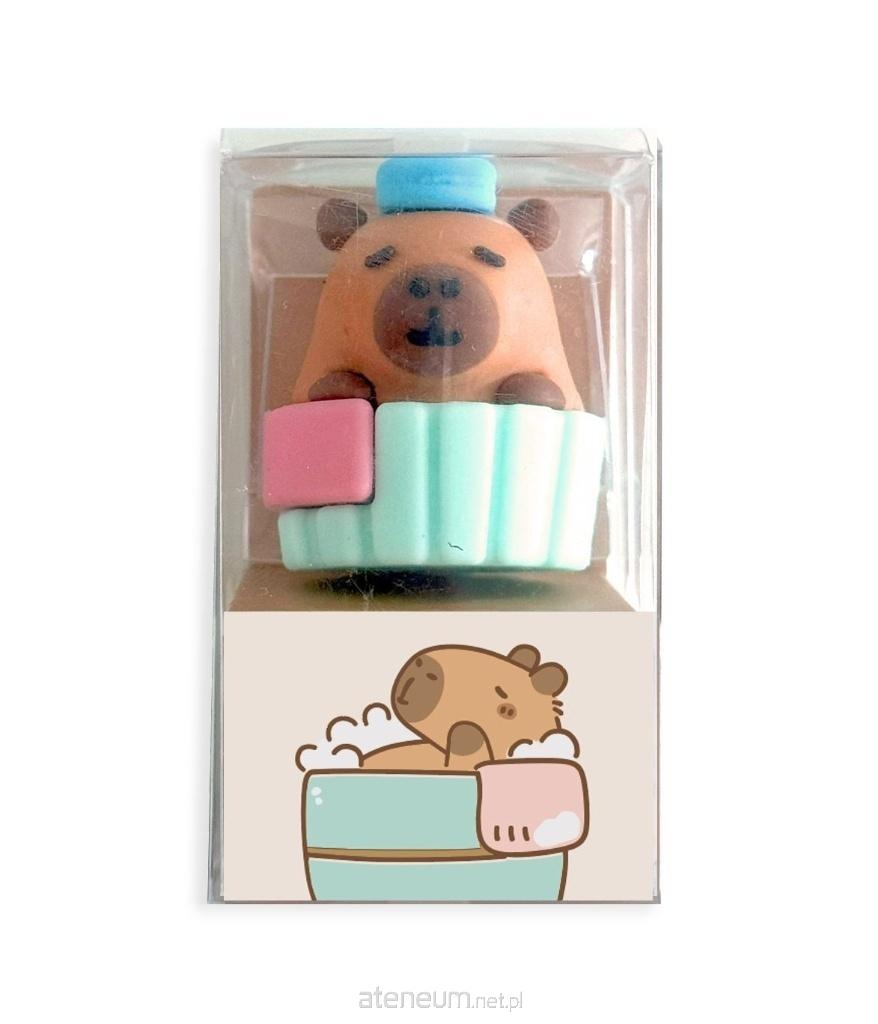 Trójwymiarowa gumka do mazania w kształcie kapibary w kąpieli. Urocza i funkcjonalna, idealna do szkoły i biura. Doskonały dodatek do przyborów szkolnych.