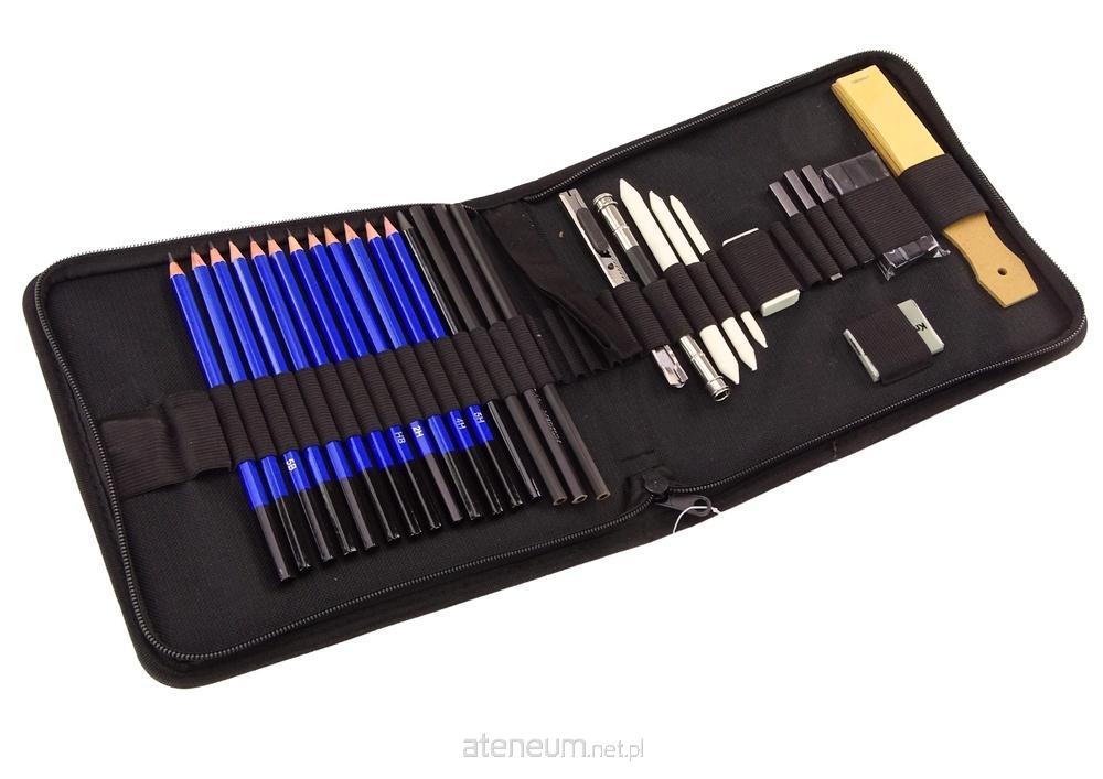 Zestaw Artystyczny Do Szkicowania Ołówki Akcesoria 32 El Zestaw artystyczny do szkicowania to prawdziwa skarbnica dla pasjonatów rysunku. Piórnik, w czarnym kolorze, jest zarówno praktyczny, jak i stylowy. Dzięki gumkom zabezpieczającym, każdy element ma swoje miejsce, co ułatwia przechowywanie i transport. To niezwykle wszechstronny zestaw, który zapewnia ogromną różnorodność narzędzi do szkicownia. Oferuje różne rodzaje ołówków o różnej miękkości, idealne do różnorodnych technik rysunkowych. Oprócz tego, w zestawie znajdują się kawałki węgla, które umożliwiają eksperymentowanie z innymi efektami w rysunku. Dodatkowo, gumki do mazania, temperówki i inne akcesoria piśmiennicze uzupełniają zestaw, zapewniając kompleksowe wyposażenie dla każdego artysty. Dzięki temu zestawowi artyści mogą w pełni wyrażać swoją kreatywność i rozwijać swoje umiejętności. Niezależnie od poziomu zaawansowania, ten zestaw oferuje wszystko, czego potrzebuje każdy, kto pragnie stworzyć coś pięknego na papierze. To nie tylko zestaw narzędzi, to także zaproszenie do odkrywania świata rysunku i sztuki w najbardziej inspirujący sposób. Zestaw zawiera: - 12 ołówków do szkicowania (2H / 3H / 4H / 5H / HB / B / B2 / B3 / B4 / B5 / B6 / B8) - ołówek grafitowy - 3 ołówki węglowe (miękki / średni / twardy) - metalowy nóż artystyczny - przedłużacz ołówka - 2 temperówki - 3 rozcieracze - gumka biała - gumka chlebowa - 3 kawałki węgla (miękki / średni / twardy) - 3 kawałki grafitu (miękki / średni / twardy) - blok papieru ściernego Wymiary piórnika: 23,5cm x 21cm x 3cm Posiada certyfikat CE, ponadto jest zgodny z normą EN71. Przeznaczony dla dzieci powyżej 3 roku życia.