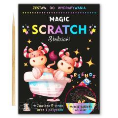 Pomóż mruczkom rozplątać włóczkę. Zakreśl zabawki Psotka. Wskaż cień Filemona. Rozwiąż wesołe zadania wymagające nieco drapania! Zawarte w książeczce ćwiczenia i związane z nimi zdrapywanki pomogą przedszkolakowi doskonalić spostrzegawczość i umiejętność kojarzenia. Pozwolą też rozwijać sprawność manualną i przygotują rękę do pisania. Kotki zapraszają do zabawy! ZADANKA & ZDRAPYWANKI to połączenie rozrywki z ćwiczeniami wspierającymi rozwój dziecka. Każdy zestaw z serii to: książeczka, a w niej: labirynty, wyszukiwanki, rysowanie po śladzie, łączenie w zbiory, dopasowywanie kształtów i inne zabawy 6 kart zdrapek, a na nich: ukryte obrazki oraz pole do wydrapania wskazanych kształtów rysik