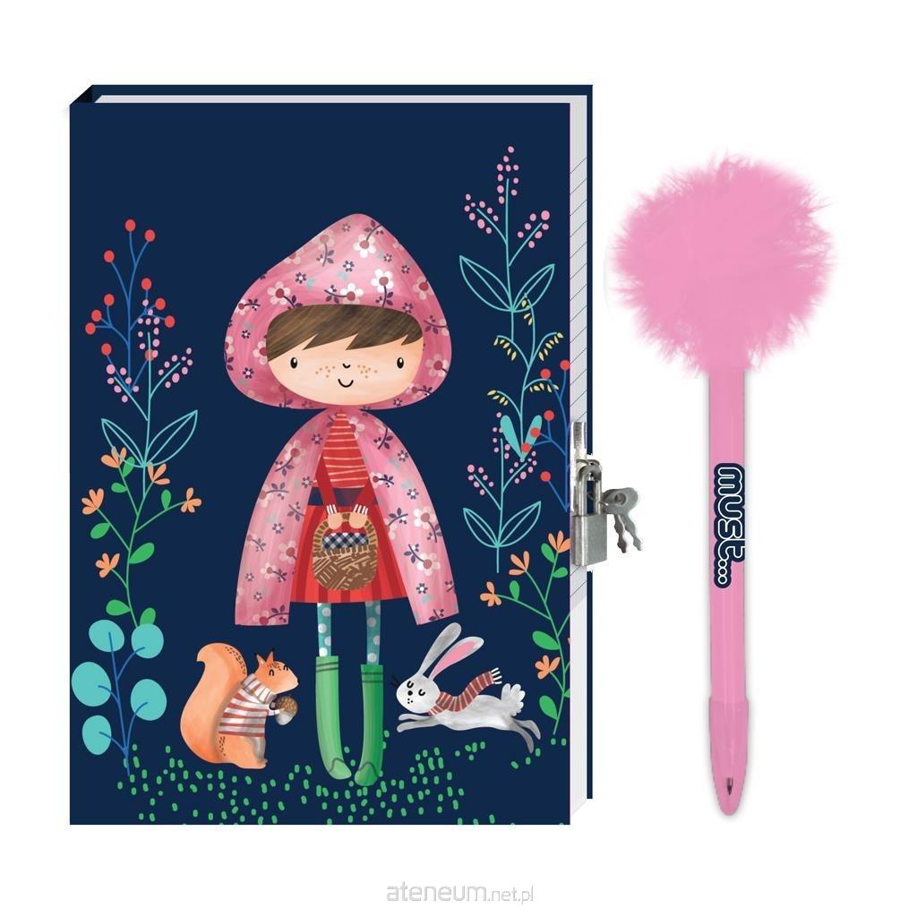 Pamiętnik w zestawie z długopisem z ozdobnym pomponem. Pamiętnik zamykany na kłódkę, wymiary: 12x18 cm.