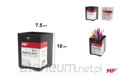 Metalowy pojemnik na przybory szkolne. Wymiary: 10x11 cm.