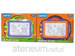 Zawiera tablicę do rysowania, długopis oraz 3 pieczątki. Każdy obrazek można wymazać przesuwając specjalnym przyciskiem w prawo i w lewo i rysować od nowa. Wymiary znikopisu: 38x28x3 cm. Wiek: 3+.